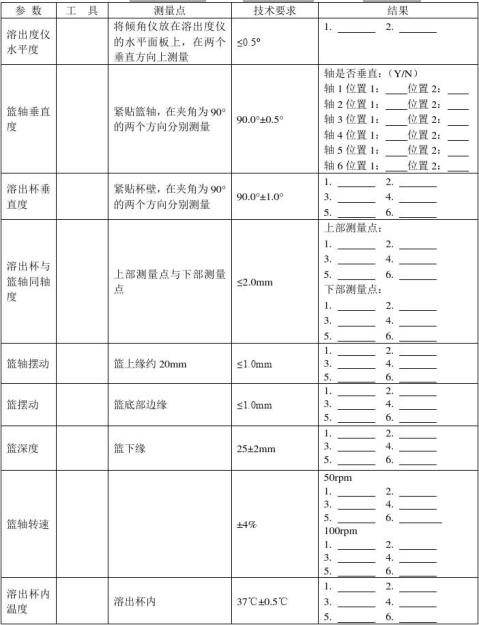 溶出度儀機(jī)械驗證記錄表——**法(籃法)